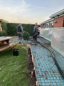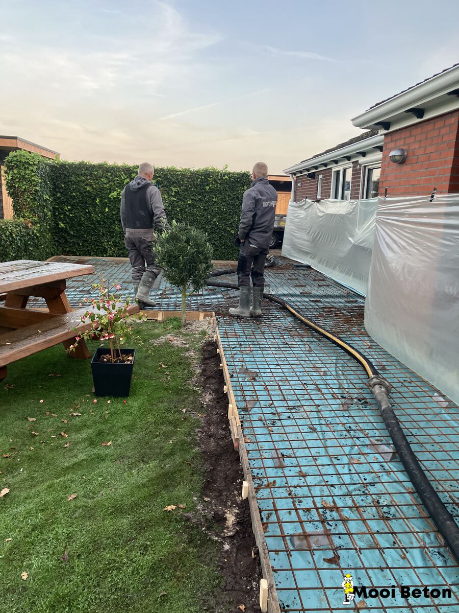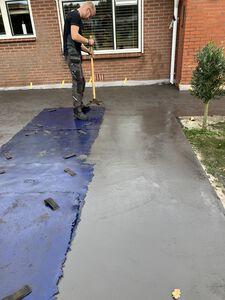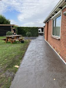 Terras met tuinpad geprint met Belgisch Leisteen in de kleur antraciet en afgelakt met Lusterseal